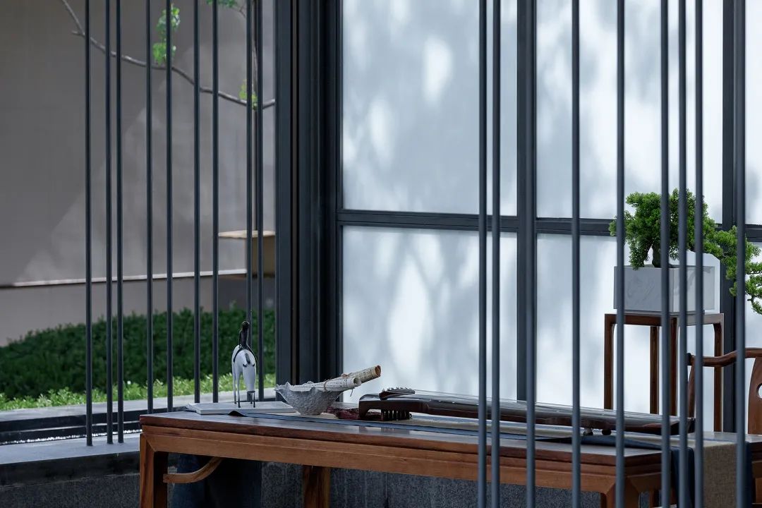 时隔多年,再次走进凉亭,看见格栅与玻璃交织出的光影,看见古朴的桌面和那架还放在那里的琴,不自觉就将双手按上。