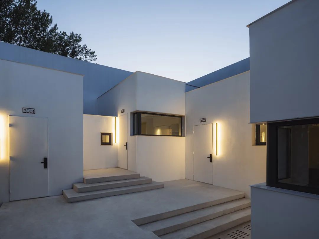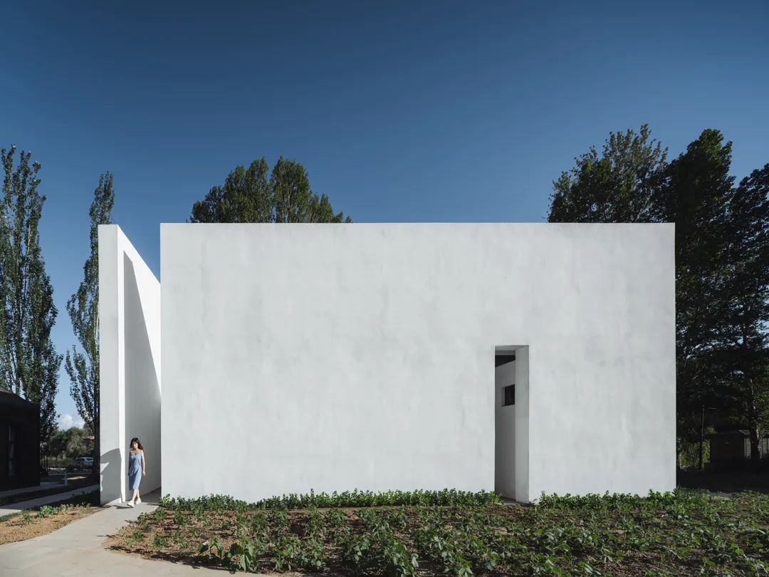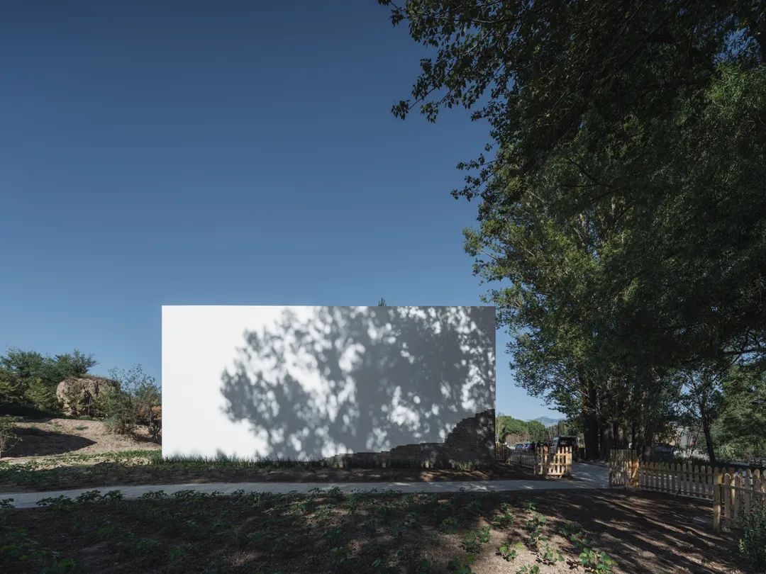 2、基于粗浅的人类学思考。我注意到在西窑头村以前的民居都是包围着连续的象征边界榷权的围墙。我的设计不过是在这个场地强化了这个传统类型。其实乡村是个熟人社会,即便家家户户之间有高墙也挡不住窥视和八卦。但作为接待外村人(陌生人)的民宿,陌生人的在地安全感有时不得不建立在封闭的环境里,并需要制造一种自保的体验。所以我把墙体升到7米,创造了一个完全独立的形象。这堵在本地人和外村人眼中解读意义可能不同的墙却可以同时为双方所接受而最后成为我塑造陌生人这个形象的手段。