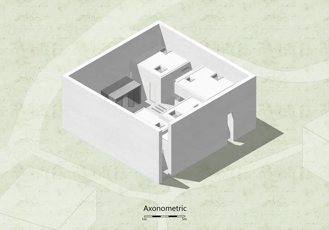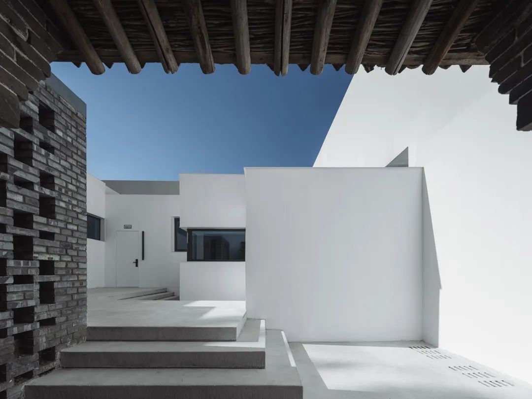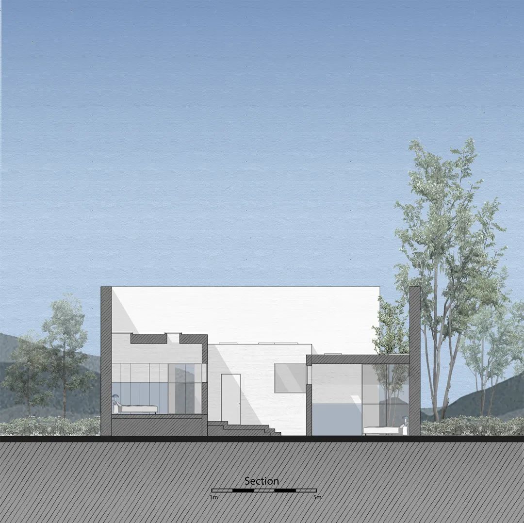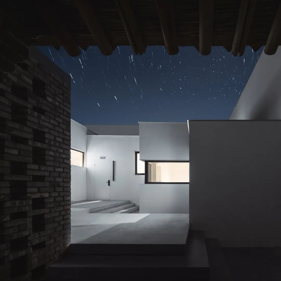 3、建筑学的文脉最终变成了材料,构造和形式符号的喃喃自语。这个封闭的民宿表达了对上述自语的拒绝。同时连续高大封闭的围墙也拒绝了风景和寒暄式的交流。它的目的是创造一个帮助陌生人内观的场所。但封闭还有一层技术含义。作为在北方生活过的我,会注意风景和文脉之外还有你会忽视的在地性比如天气。在造价严格控制(政府预算)的前提下,厚墙构造在保暖以及遮阳上可以创造采用最少电力的冬暖夏凉的居住体验。这点,最后也被村民证实了。