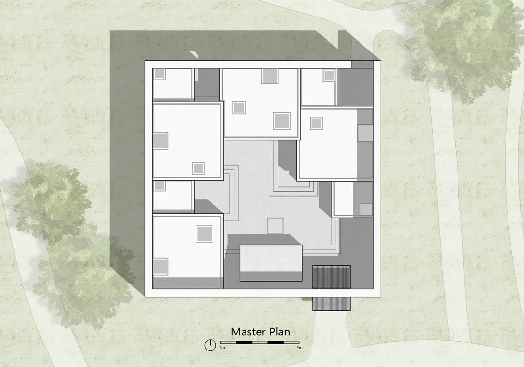 材料:青砖、微水泥、涂料、玻璃、钢板