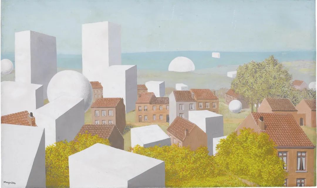 A 封闭的构思基于三个方面。1、我的第一灵感来自马格利特的超现实主义画作《Le Calcul Mental》。陌生人要在当地创造一个超现实主义的图景。它会超越我们习以为常的乡村景象而和我们熟悉的城市大不相同。