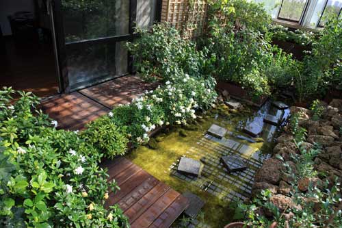 俞孔坚家的屋顶阳台,他设计了雨水收集系统,用于阳台花园灌溉