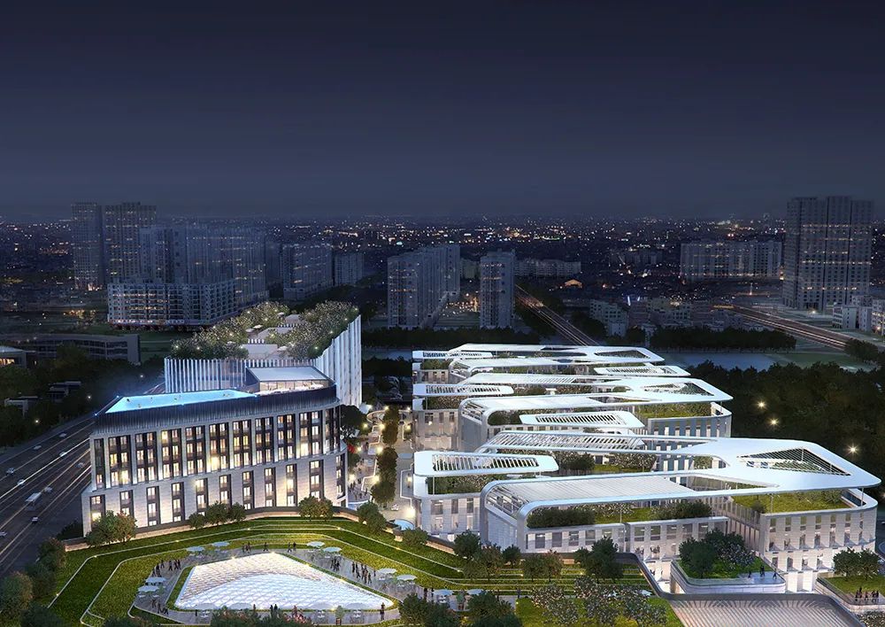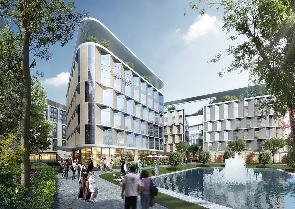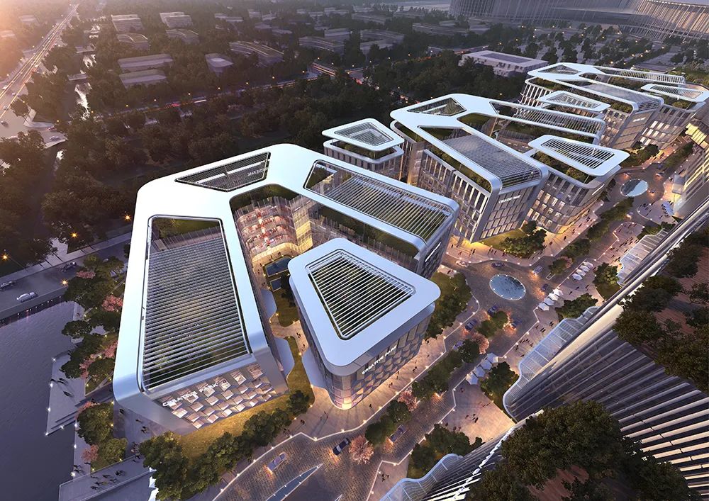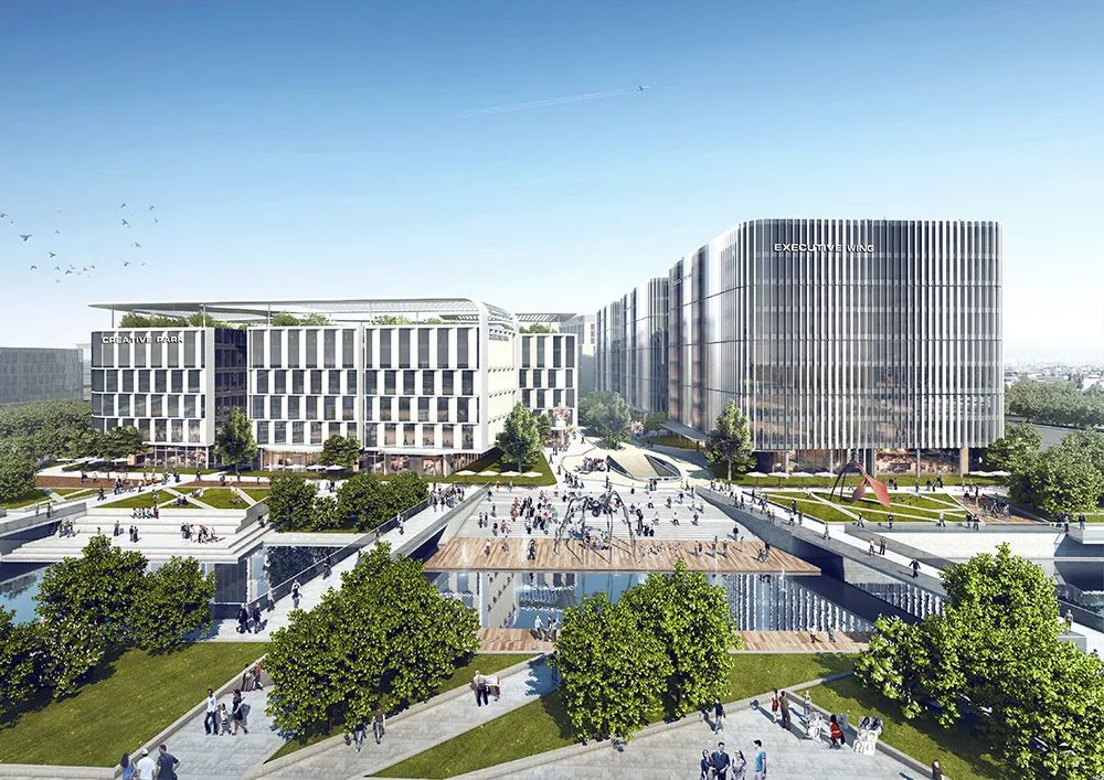 设计旨在融合多元功能业态,通过大量公共空间,将集办公、商业、酒店于一体的综合体,打造成为兼具创新办公空间以及城市生活方式的全新目的地。 项目由三栋高层办公大楼、三个低层办公区、一座奢华酒店、一个会议中心、购物中心及商街组成。