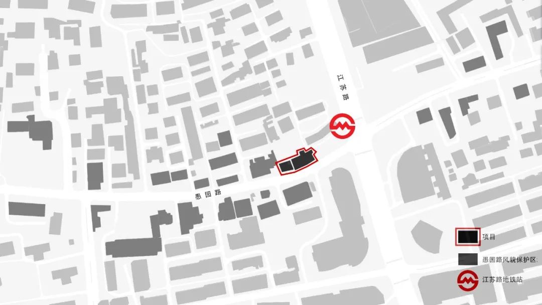 愚园路984-1008号位于愚园路江苏路路口,紧邻地铁2/11号线江苏路站7号口,交通十分便利,基地前身为上海老民居,建筑较为老旧。本次改造由三益主持设计,旨在通过形态更新、功能升级、资源融合以及记忆延续的四大策略,将“文创商业、社区民生、艺术文化”三大主要内容植入项目之中,打造有内容、有趣味、有温度、有未来的全新生活方式。