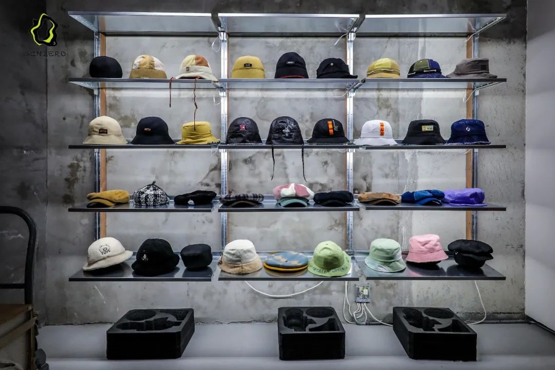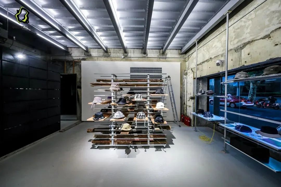 店名GENZERO可译为“Z世代”,店铺主理人是一位00后,产品设计师和店员大部分也都是00后。店内装修采用流行的工装风,各色各式帽子整齐陈列在展架上,简洁但不让人觉得冷酷。