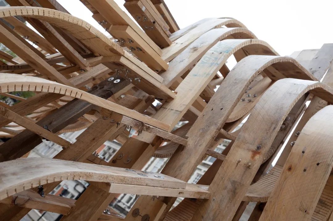 在木材经历过第二次生命周期后 — 也就是“重现”装置的拆除。部分组件会在Hassell伦敦事务所进行展示和再利用,而剩下的木材则会送回我们采购的木材循环机构。“重现”的最终目标在于建立起本地木材行业和其衍生品之间的对话,从而向世界展示,建筑垃圾能够创造出创新的木结构建筑,同时也提醒着我们,设计需要留心环境。