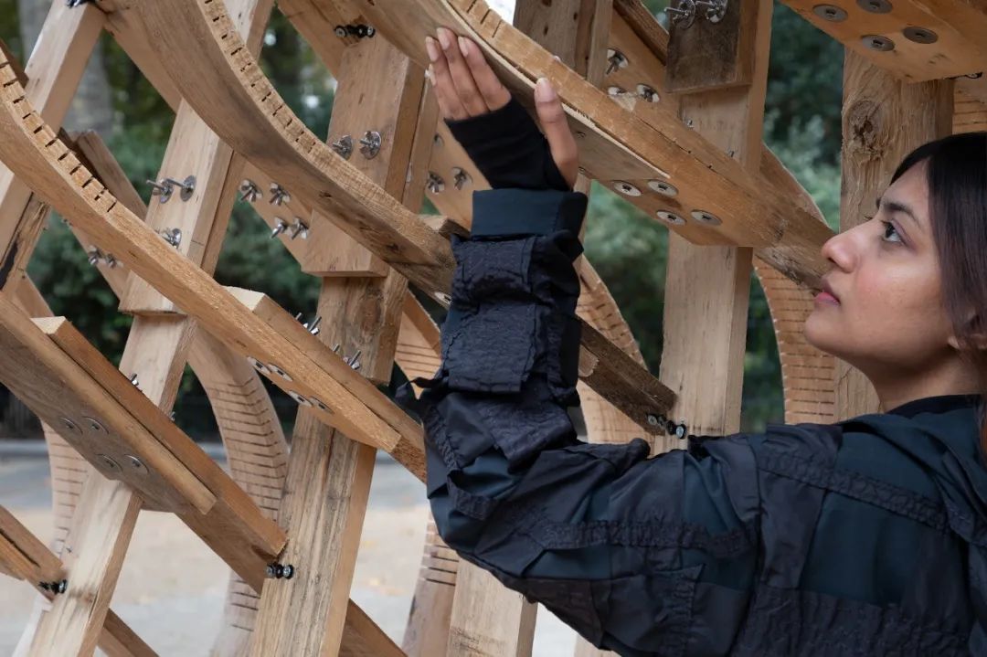 她补充说,作为设计师、建筑师和工程师,在设计和施工时我们对环境也负有责任,我们需要始终对设计和施工的方式保持敏感。如何将建筑垃圾变成有用的资源是本次探索的灵感之一,随后我们开始研究如何使用回收的木料打造一个户外的轻量结构,设计过程的前期便开始关注项目能带来的生态影响。