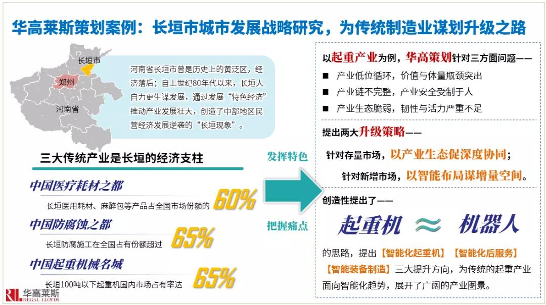 在传统制造业升级方面,我再给大家分享一个华高莱斯服务的案例——长垣市城市发展战略研究项目。