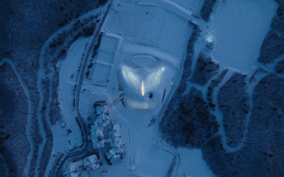 亚布力的夜空是延伸向宇宙的深蓝,可见满天繁星。白天,这里是雪地中的大地艺术;夜晚温暖的灯光点亮,宛如一顶燃烧着篝火的帐篷。人类对未知的探索、求知求实、坚韧不拔的精神在这里熠熠生辉,昼夜不息,薪火相传,为后来者指引着方向。