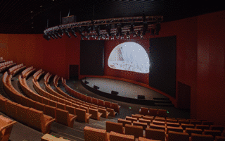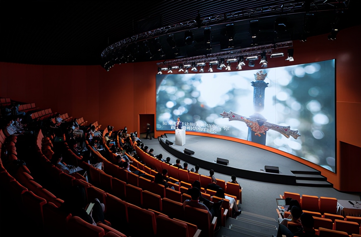 可以容纳近千人的主会场是完全无柱的整体空间。350座报告厅背后LED屏幕为可开启设计,开启后正对西侧雪道,观众可将室外美景尽收眼底。