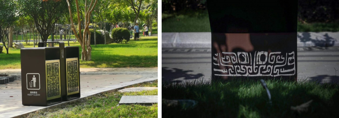 紫荆山公园系商代旧城址的一部分,距今已有3500年的历史。几千年来,由于风沙堆积和洪水冲淹,大部分城墙已埋入地下。设计将园路铺装、垃圾桶、标识系统等赋予殷商纹样充分彰显紫荆山公园悠久厚重的商文化底蕴。