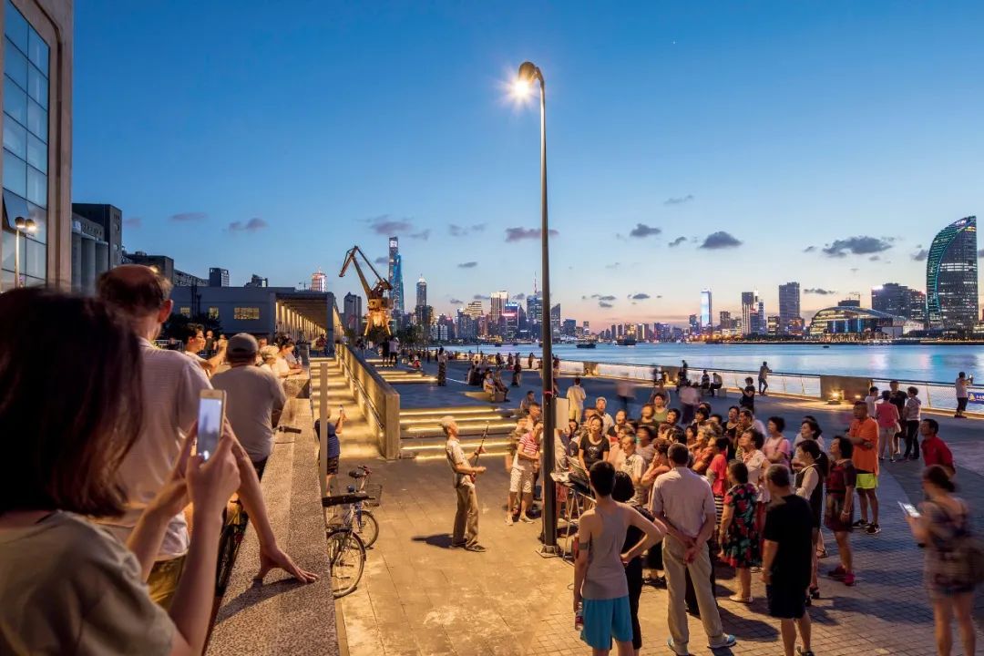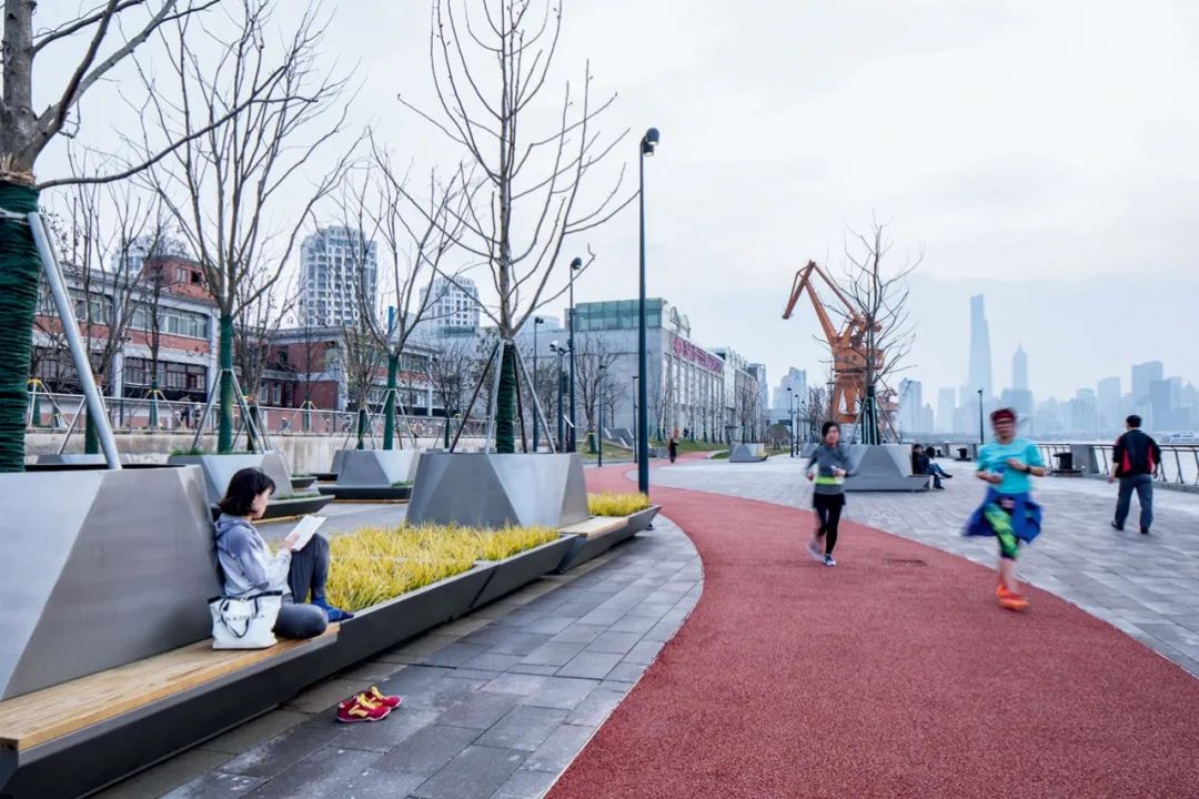 贯通工程面临的一个非常重大的挑战是如何将平日和节庆的活动相结合。场地必须兼具容纳正式和非正式活动,即日常与非日常的需求。如举办一年一度的上海马拉松比赛和国庆节等大型活动时,场地需在不影响公共安全的前提下,支持大量的人群涌入并增强人们与自然水景的亲近和联结。而在平日,场地设计需要针对不同人群,满足多元化的使用需求。真正带动这片区域活力的,并非是那些空荡的城市广场或雄伟的地标建筑。宽敞但尺度适宜的场所,充足的座椅及休息点,都能增强人们驻足停留的意愿,进而激发更多城市活动。