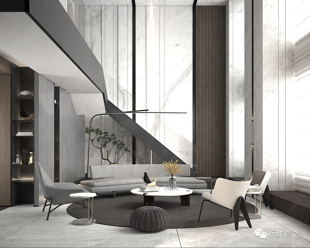 住宅项目整体空间感很通透,为了让住宅的精装修跟整体融合,我们结合厅室材料和环境材料对光线的影响,进行了一些大胆激进的尝试。比如舍弃了传统玻璃,改用U型玻璃,可以帮助用户约束外部对住宅内部的视野,又满足了用户本身室内采光,用户的整体感受会有更多私密感。