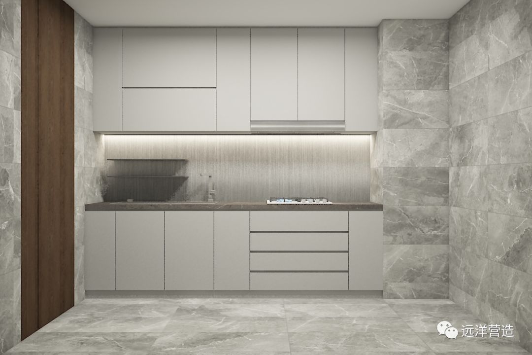 我们对于每个空间都是精打细磨,从客户的实际需求以及性价比出发,整体品质感是一致的,不会因为户型的大小,而拉低选材和配置的差别。在选材的精挑细选方面做了非常多的严密组合。电视背景墙设计、壁龛、开放柜、配灯带多种材料的组合做了优化,同时围绕远洋健康理念选用地暖、中央空调、新风、净水等,为武汉人打造新时代理念下的“健康生活家”,为客户的高品质生活提供保障。