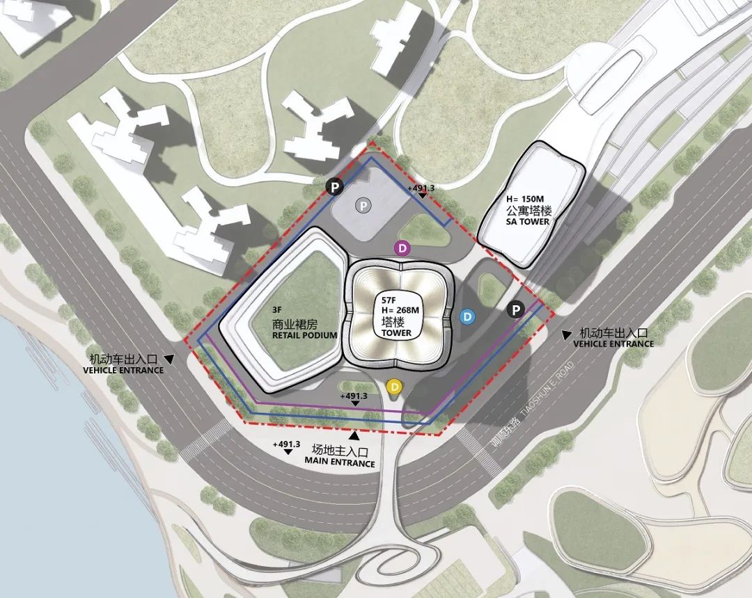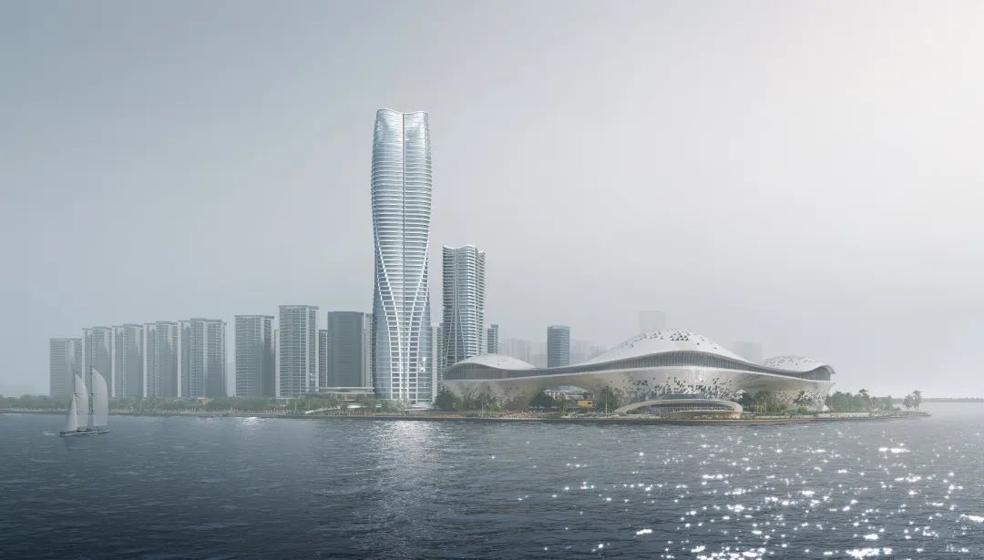 该竞赛方案主体为一座高 268 米的超高塔楼,旨在将其打造为中国粤港澳大湾区滨海旅游城市核心地段的一座视觉地标。