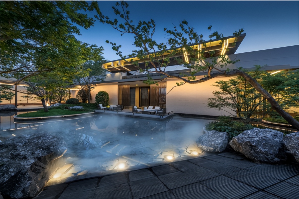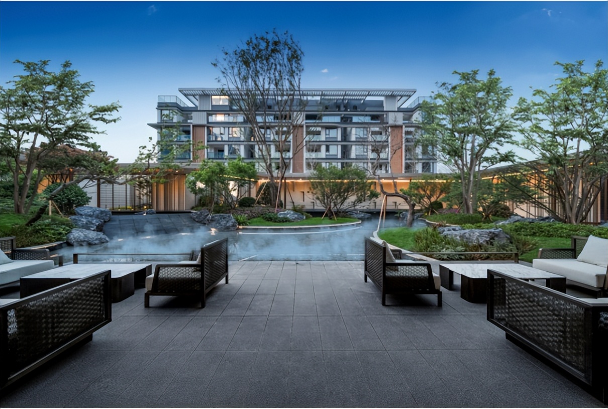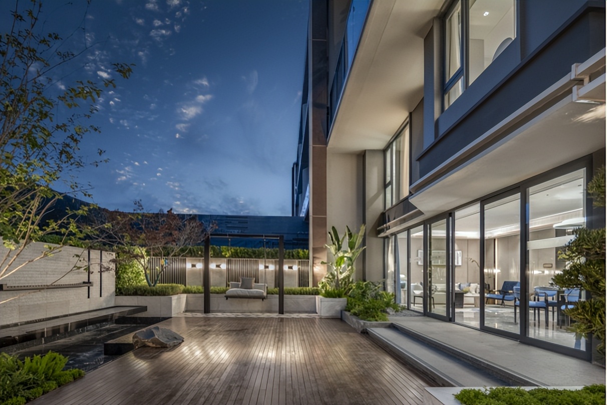 进入大门后,景墙、树阵、叠水、屏风,以及涌入眼帘的中庭水院,通过一重酒店式落客广场、二重尊贵迎宾厅、三重中庭水院、四重巷道过渡空间、五重私家花园入户,还原出五进制的尊贵礼序,让归家成为一种生活的享受。
