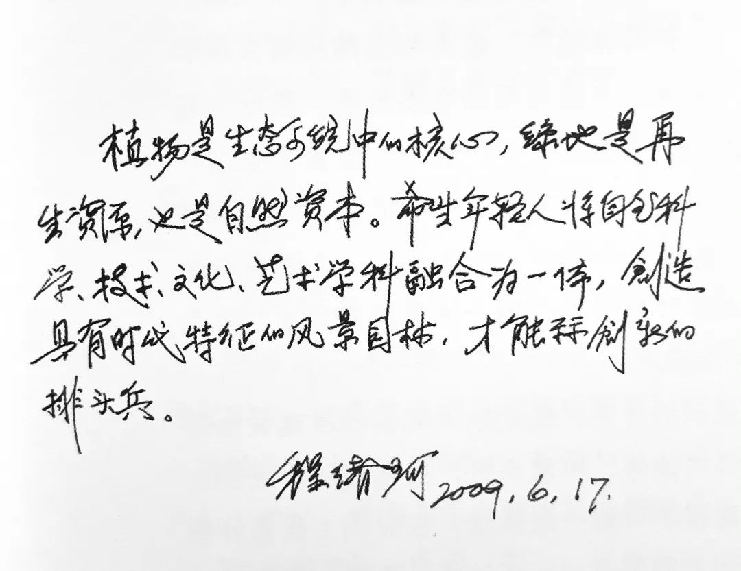 程绪珂:身体不太好,但上海有好的展览之类的活动,我还会跟老朋友一起去看看。对于《生态园林的理论与实践》这本编了8年的书,我想说,它是在动态实践中摸索着写出来的,能够顺利出版完全是依靠了全国几十位业内同行无私地贡献了自己的专长和才能,也使我进一步认识到集体力量的伟大。在编写这本书之前,我去了三四十个城市参观学习,跟同行们探讨生态园林;编写过程中,又得到了许多鼓励和支持,因此说,它是集体智慧的结晶。尽管这本书获得了一些荣誉,但与现在的形势仍然有距离,不是十全十美的,仅仅是生态园林理论与实践的开头。现在我们都年纪大了,但事业的发展不能因人的轮换而更换,理论与实践总是在不断发展,希望我们的中青年一辈园林人能与时俱进,继续事业,沿着这条“自然之道”走下去。